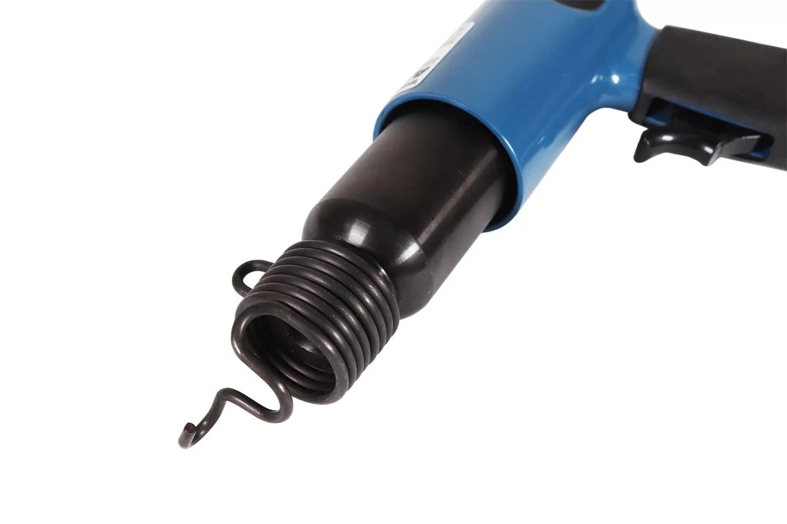 Der Druckluft-Meißelhammer eignet sich für allgemeine Karosseriearbeiten und zur Entfernung von Rost. Über die Schnellspannfeder und den integriertem Auslöser sind Werkzeugwechsel und Bedienung spielend einfach.