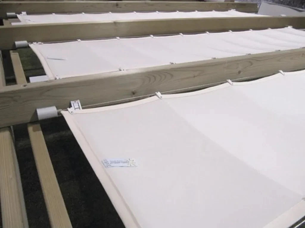 Es besteht aus einem 100% textilen, langlebigen und stabilen Polyesterstoff (140g/m²), ist UV-stabil und bietet 95% UV-Schutz. Der schmutz- und wasserabweisend Stoff (mit Regenschutz) ist bei 40°C waschbar. Schnelle Montage mit 2 cm Randsaum, leicht abnehmbar, Nähmaschinengeeignet.