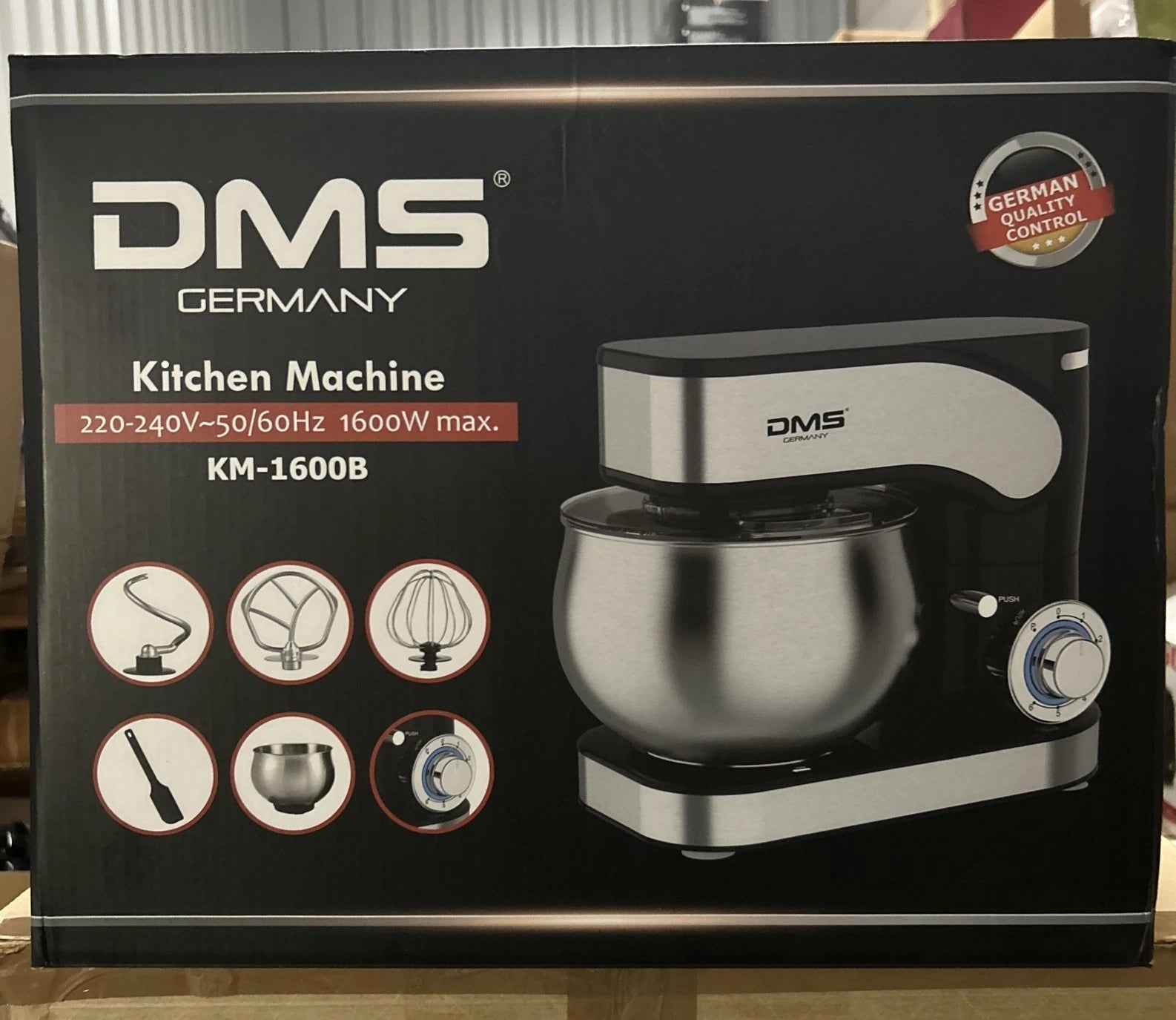 DMS KM-1600BL Küchenmaschine, Farbe: Schwarz/Silber, 6 Liter, 1600 W, Rühren, Knehen
